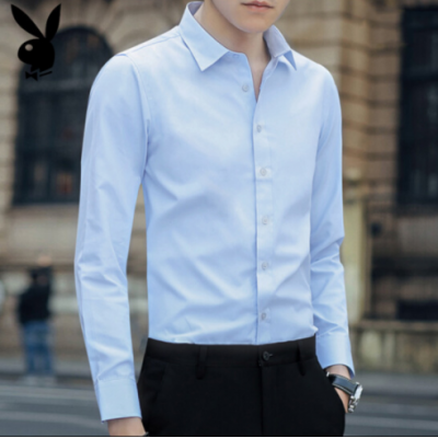 花花公子 长袖衬衫男2018春秋季新款商务职业男装休闲纯色免烫衬衣男 天蓝色 L/39