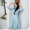 商品名称:2018春装新款一字领格纹七分袖收腰显瘦连衣裙女