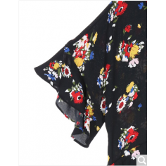 MO&Co.2017夏季新品深V领荷叶边衣摆抽绳碎花连衣裙