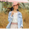 LRUD牛仔外套女2018春季新款长袖原宿bf短款外套宽松绣花学生上衣 蓝色 L
