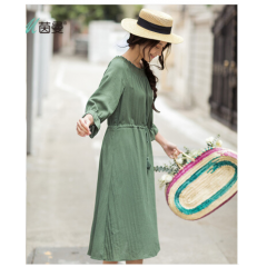 2018春装新款绣花圆领收腰宽松显瘦连衣长裙女