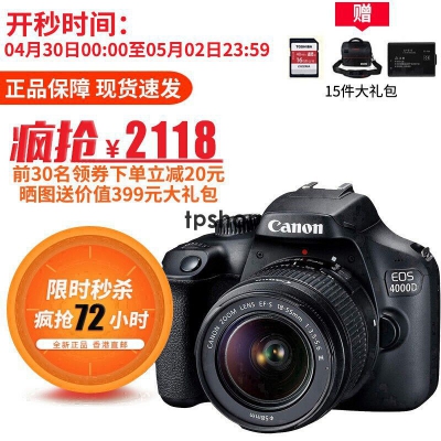 佳能(Canon)EOS 4000D 单反相机 APS画幅 入门级高清数码照相机 3000D同款新款 单机+18-55mm III镜头