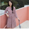 2018春装新款一字领格纹七分袖收腰显瘦连衣裙女