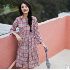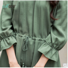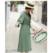 2018春装新款绣花圆领收腰宽松显瘦连衣长裙女