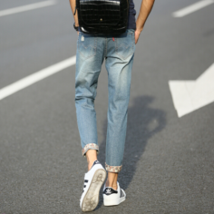 古莱登 牛仔裤男 2017新款牛仔裤修身韩版潮牛仔裤青少年破洞男潮 蓝色 29=2尺2