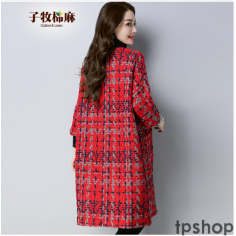 子牧棉麻2017冬季新款民族风文艺格子中长款毛呢外套