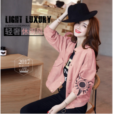 XZOO短外套女春季韩版2018新款夹克衫百搭短款刺绣棒球服 粉色 M