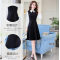 暖盈好长袖雪纺连衣裙2018春装新款韩版修身大码女装针织性感连衣裙LYQ826 蓝色 L