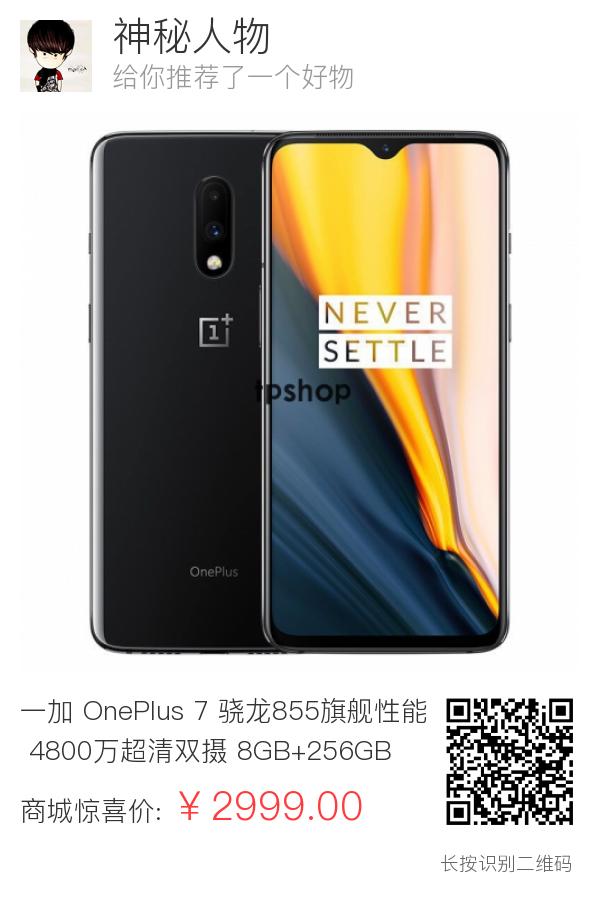 一加 OnePlus 7 骁龙855旗舰性能 4800万超清双摄 8GB+256GB 曜岩灰 全面屏拍照智能游戏手机