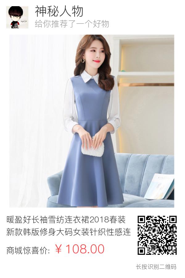 暖盈好长袖雪纺连衣裙2018春装新款韩版修身大码女装针织性感连衣裙LYQ826 蓝色 L